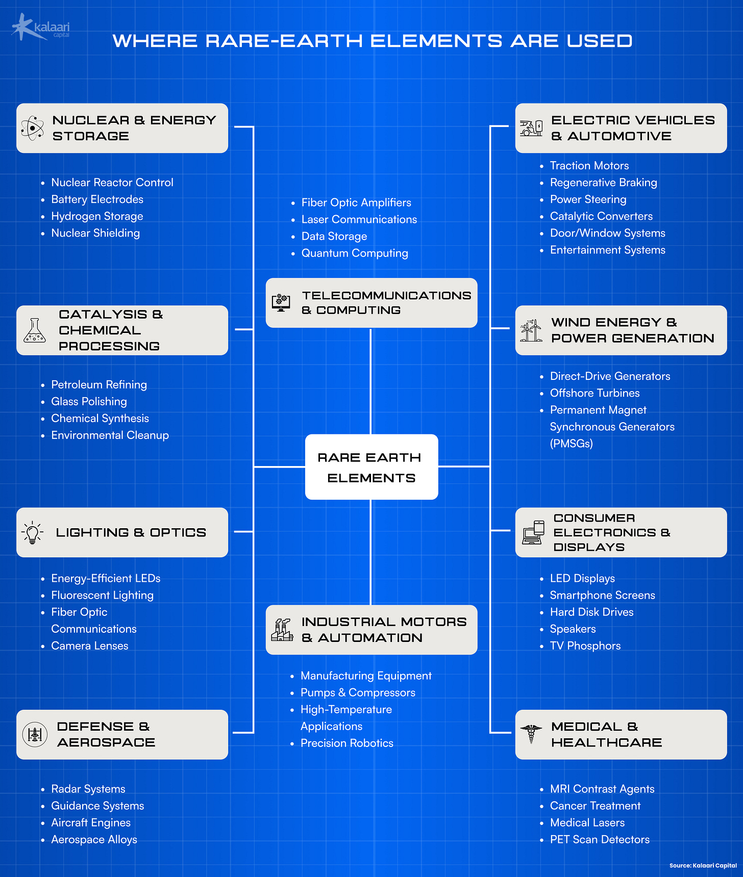 What makes REEs so important is their atomic structure (for chemistry geeks, this is their partially filled 4f electron structure), giving these elements powerful magnetic, optical and thermal properties which make them indispensable across key industries:
